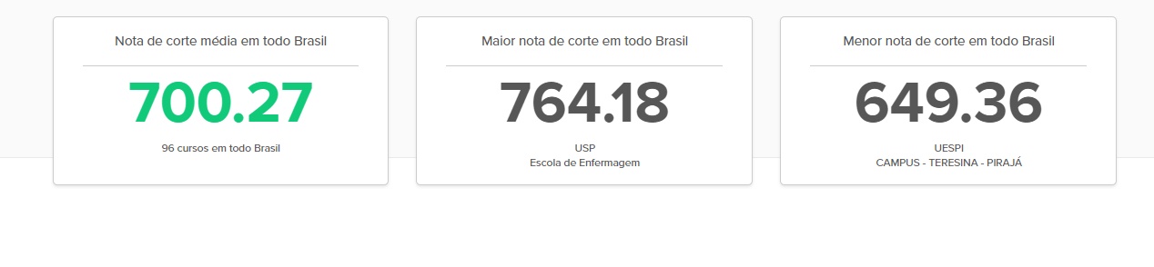 Notas de Corte para o curso de enfermagem no Brasil pelo Sisu - Ano 2018
